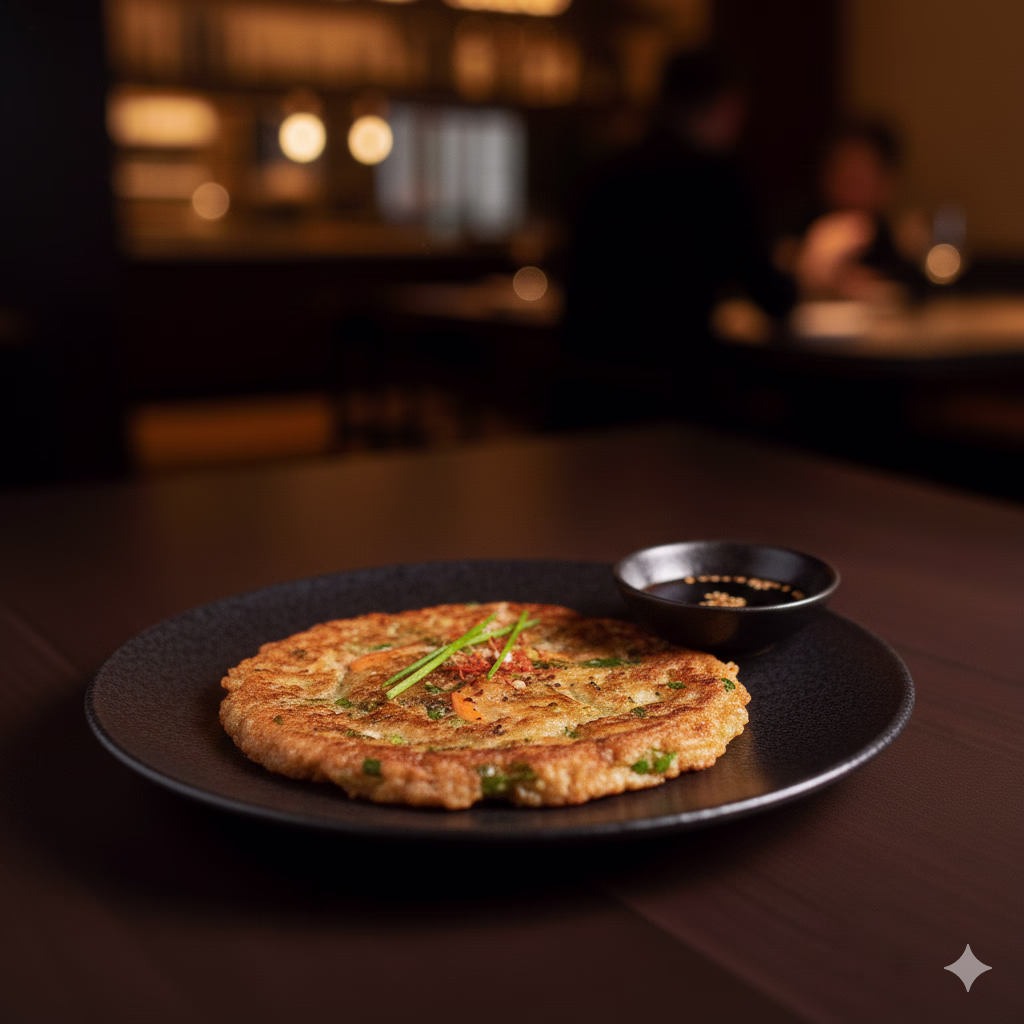 A tribute to Korean home cooking, this buckwheat pancake is a soul-warming addition to the benu menu.