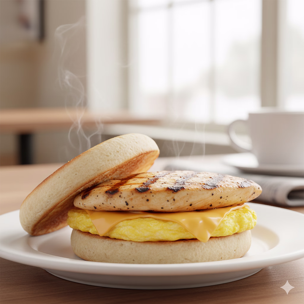 Grilled Chicken, egg, and cheese served on an English Muffin. A healthier protein option on the biscuitville menu.