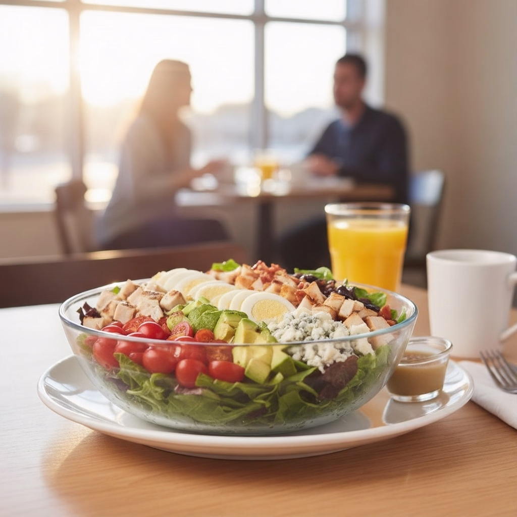 Mixed Greens, Grilled Chicken, Bacon, Avocado, Hard-Boiled Egg, Tomato, and Blue Cheese. The classic protein-packed salad on the first watch menu.