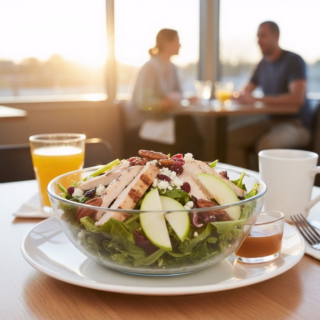 Mixed Greens, Grilled Chicken, Blue Cheese, Candied Pecans, Apples, and Dried Cranberries. A sweet and savory favorite from the first watch menu.