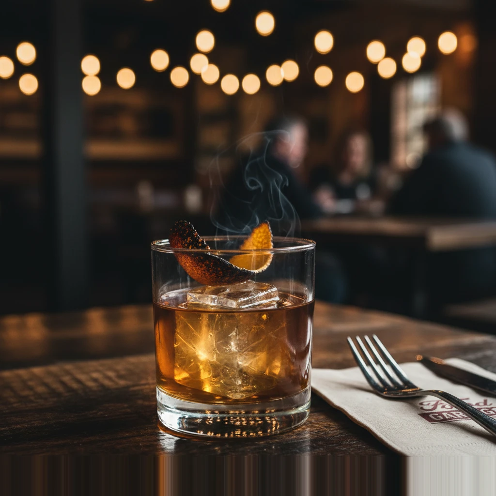 Horse Soldier Bourbon, Amaro Montenegro, and Demerara syrup with orange bitters on the fords garage menu.