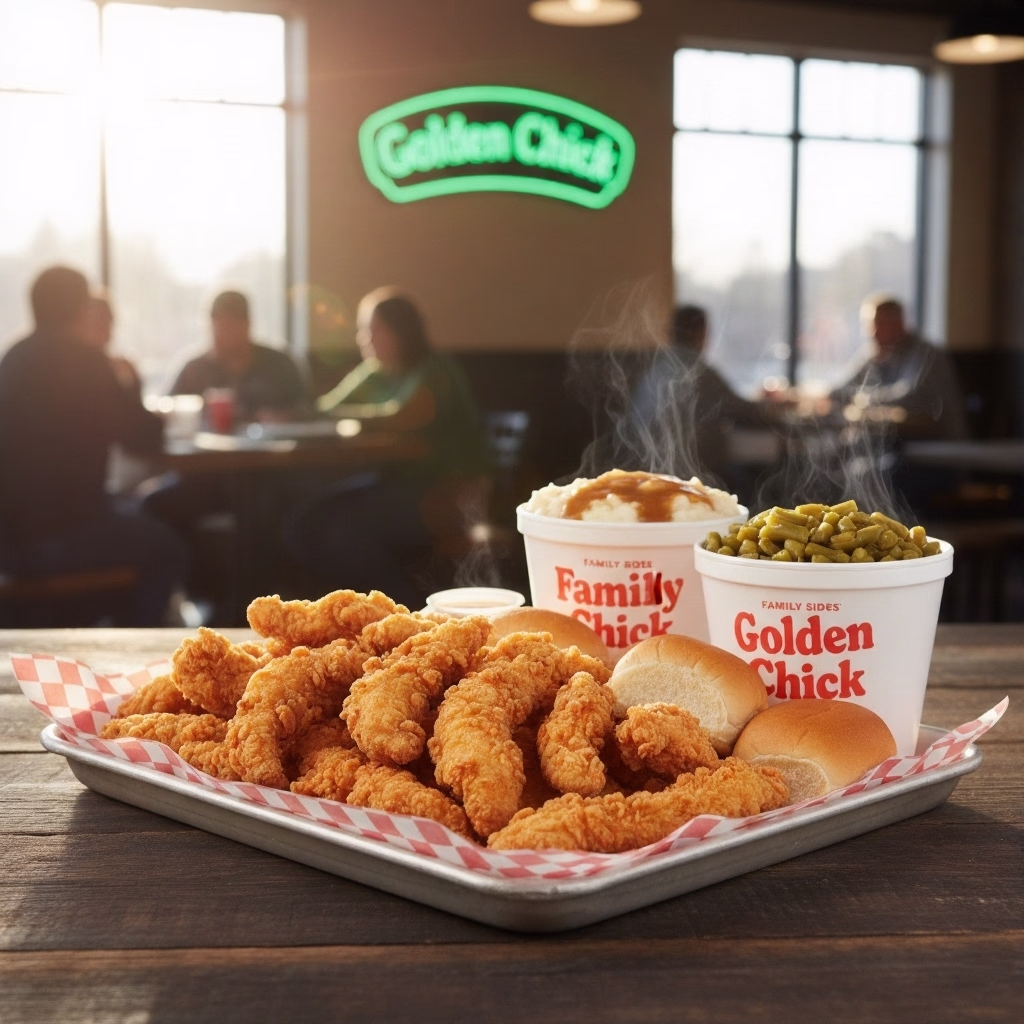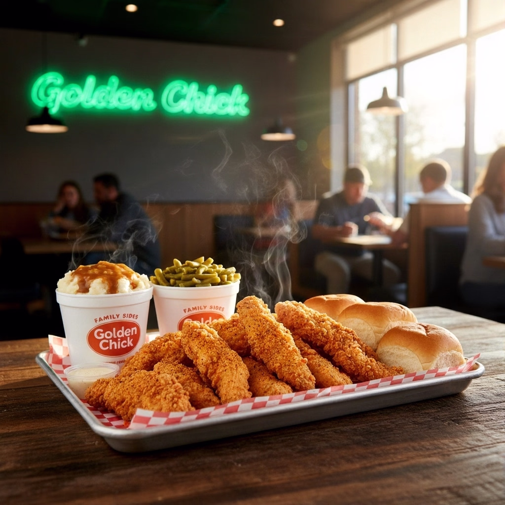Welcome to Golden Chick, your home for Legendary fried chicken and tenders! For over 50 years, Golden Chick has been serving up Incredible meals, specializing in their signature Golden Tenders and marinated-and-fried chicken. Dive into the complete Golden Chick Menu to find Delicious Family Meals, Big and Golden Sandwiches, fresh Salads, and their famous, perfectly seasoned sides. Whether you’re craving classic comfort food or something fresh, the Golden Chick Menu has the Perfect meal for the whole crew.