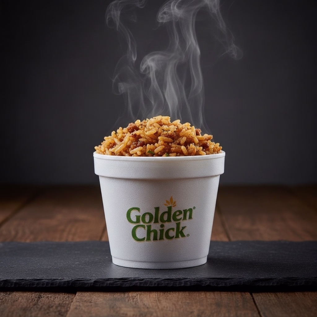 Rice cooked with seasoned meat/broth. A savory, Cajun-style rice side on the golden chick menu.