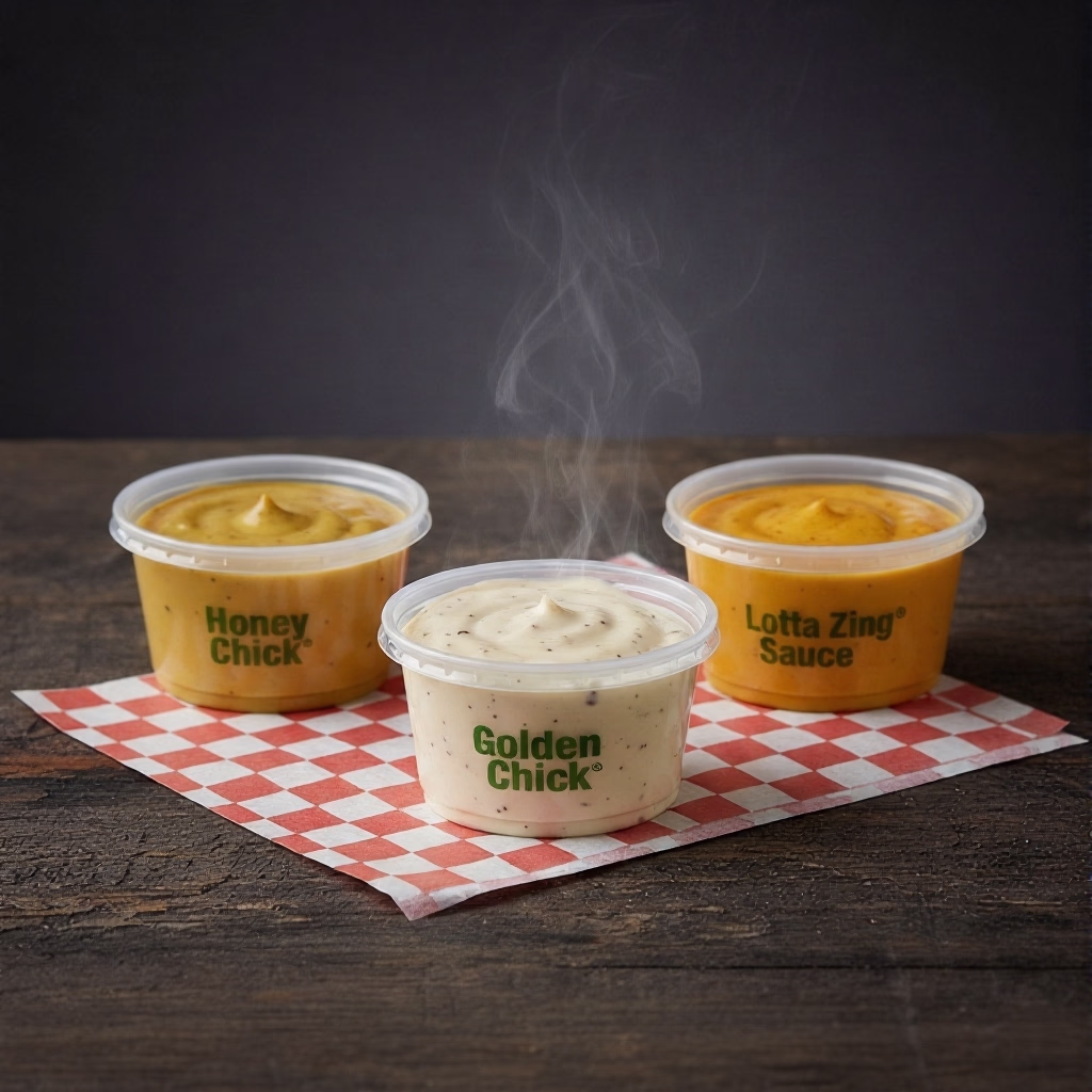 Side serving of gravy or dipping sauce (Lotta Zing, Honey Mustard, etc.). Essential for dipping on the golden chick menu.