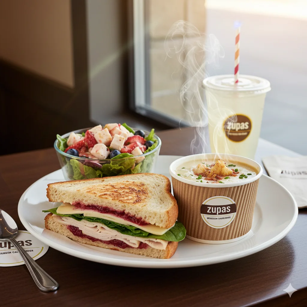 Welcome to Cafe Zupas, the ultimate destination for fresh, chef-crafted food. Known for its dedication to quality and flavor, Café Zupas specializes in Gourmet Soups, Fresh Salads, Handcrafted Sandwiches, and customizable Protein Bowls. Whether you’re looking to try the “Try 2 Combo” or Build Your Own Bowl, every dish is made with attention to detail and a promise of extraordinary taste. Dive into the menu and discover the “Good Life” with ingredients that are always fresh and flavors that are always satisfying.