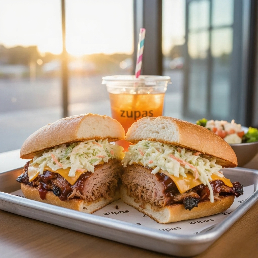 Slow-cooked BBQ pork, melted cheddar, and coleslaw on a fresh roll. A smoky and tangy sandwich from the zupas.