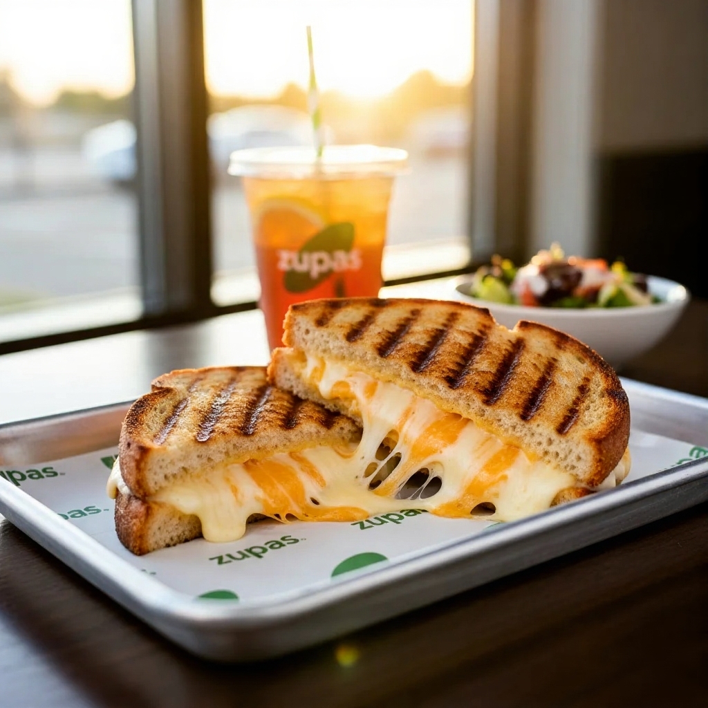 A rich blend of multiple melted cheeses on grilled bread. A creamy and classic choice from the zupas menu.