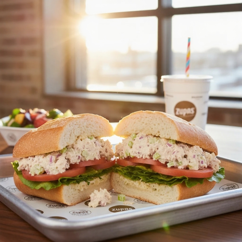 Tuna salad mixed with celery and onions, served with lettuce and tomato on a fresh roll. A refreshing fish option on the zupas menu.
