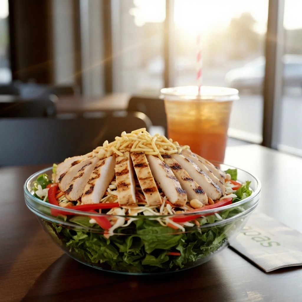 Grilled chicken, chow mein noodles, peanuts, red bell peppers, and sesame dressing. An umami-rich, unique salad on the zupas menu.