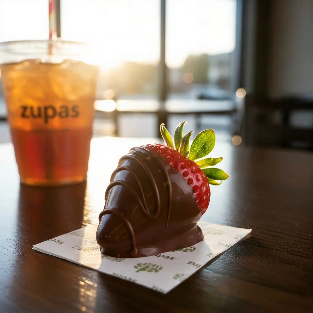 Fresh strawberry dipped in milk chocolate. A light, signature dessert included with many meals on the zupas menu.